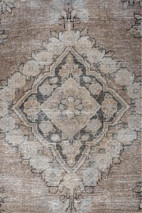 They have a medium weave, soft palette and often use an all over pattern making them desirable for interior designers. It has a subdued palette of ivories, grays, and browns. The design is a stylized "Harshang" pattern with a folksy drawing which gives it a country charm and aesthetic. Mahal rugs are similar to their better known Cousins Sultanabad’s.