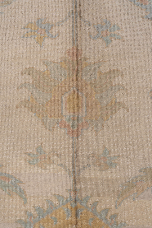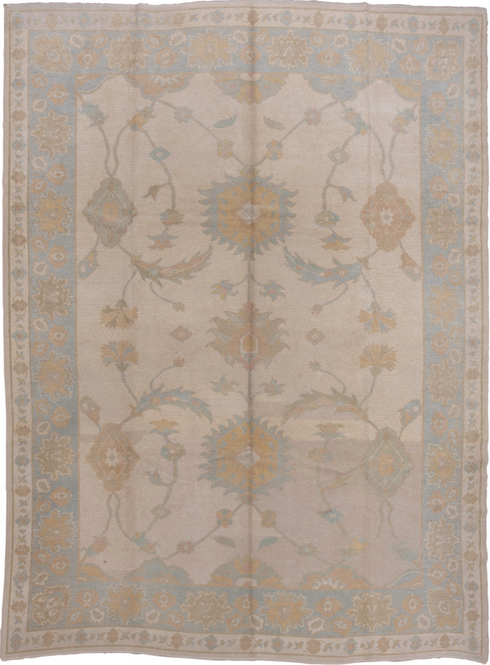 Oushak is a town in West Central Anatolia. Since the fifteenth century, it is the most famous and important rug producing center of Turkey. Particularly well known are the rugs known by their pattern such as “Large Medallion Oushak, “Star Oushak” “and Small medallion Oushak”. They frequently appeared in sixteenth and seventeenth-century Old Master European paintings. There is a group of paintings depicting King Henry VIII of England and family members standing on several different well-known types. From the late eighteenth and through the twentieth century, it became an important center for producing carpets for export to the West. The rugs from the late nineteenth and early twentieth century are highly favored for their decorative appeal with their soft palette, excellent color combinations, and informal drawing. Oushak weaves were also produced in the surrounding villages on simple looms where the weavers had the freedom to create their own designs.