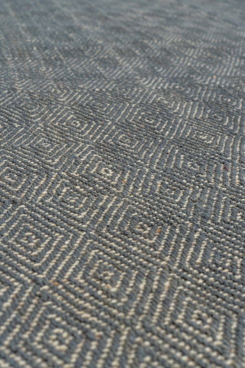 A Kilim is a flat woven rug where the weft strands are used to create the design. They nearly always have bold geometric patterns due to the technical difficulties in weaving curved lines.