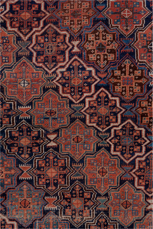 Afshar is a tribal group of people located in Southwest Iran, the Caucasian mountains, and Turkey. Most Afshari rugs are produced in village workshops in Southwest Iran. They are woven mostly on wool in a squarish format. The design usually features three center medallions surrounded by small geometric motifs where the use of botehs in the design is common.