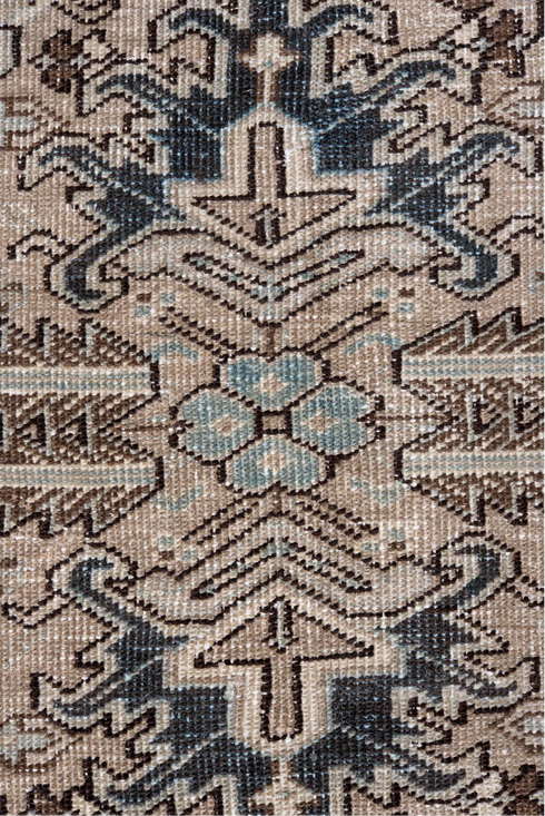 Located in north west Iran, Heriz is one of the most well known rug weaving centers. They are woven with geometric designs on a cotton foundation using the symmetrical (Turkish / Ghiordes) knot. They usually come with a large central squarish medallion with pendants either ends.