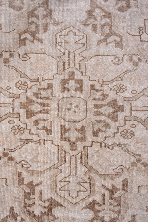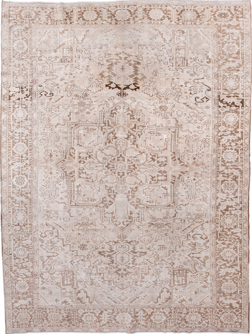 Located in north west Iran, Heriz is one of the most well known rug weaving centers. They are woven with geometric designs on a cotton foundation using the symmetrical (Turkish / Ghiordes) knot. They usually come with a large central squarish medallion with pendants either ends.