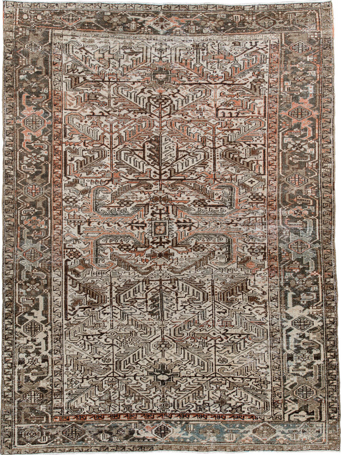 Located in north west Iran, Heriz is one of the most well known rug weaving centers. They are woven with geometric designs on a cotton foundation using the symmetrical (Turkish / Ghiordes) knot. They usually come with a large central squarish medallion with pendants either ends.