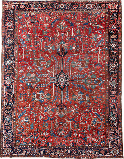Located in north west Iran, Heriz is one of the most well known rug weaving centers. They are woven with geometric designs on a cotton foundation using the symmetrical (Turkish / Ghiordes) knot. They usually come with a large central squarish medallion with pendants either ends.