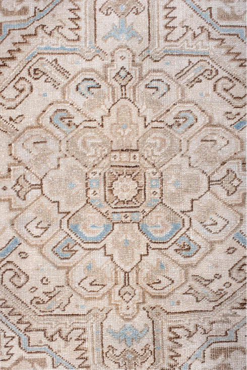 Located in north west Iran, Heriz is one of the most well known rug weaving centers. They are woven with geometric designs on a cotton foundation using the symmetrical (Turkish / Ghiordes) knot. They usually come with a large central squarish medallion with pendants either ends.