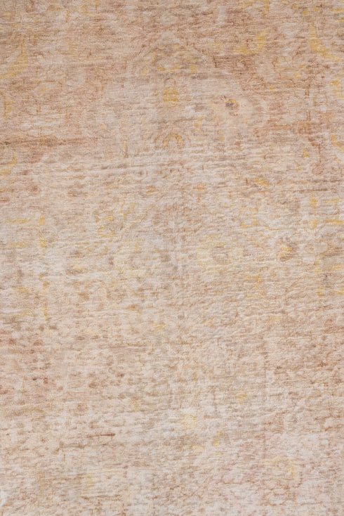 This eastern Anatolian rug is essentially a monochrome with a high/low pile, the low areas adding a second tonal variant to the allover cream palette. The borders are only slightly differentiated, producing a subtle frame. The pile is silky, very short, and the low areas, constituting the pattern, are essentially pileless.