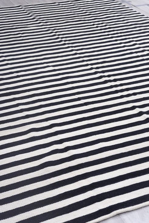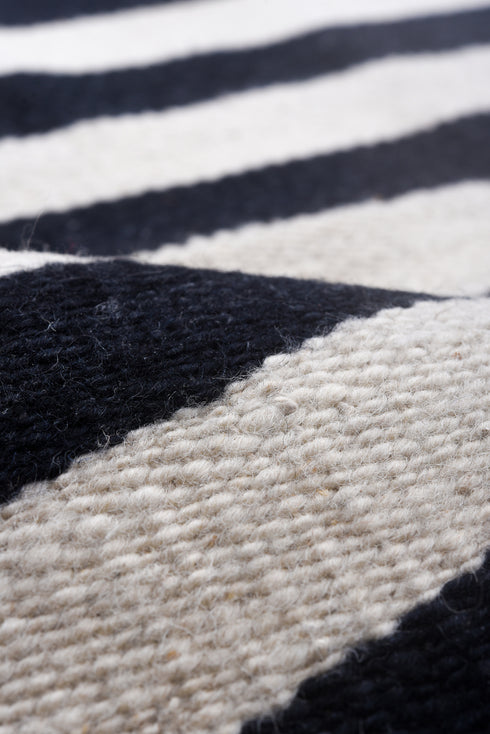 A Kilim is a flat woven rug where the weft strands are used to create the design. They nearly always have bold geometric patterns due to the technical difficulties in weaving curved lines.
