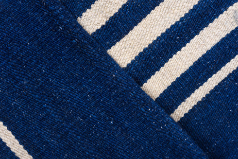 A Kilim is a flat woven rug where the weft strands are used to create the design. They nearly always have bold geometric patterns due to the technical difficulties in weaving curved lines.