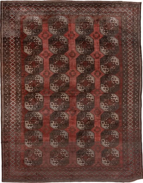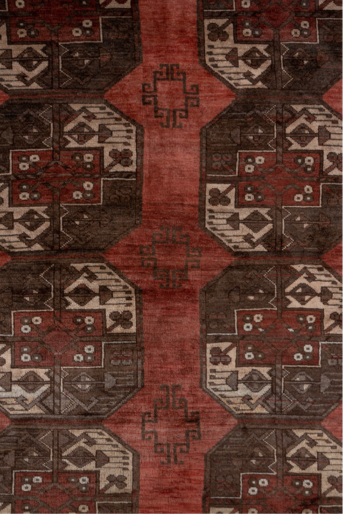 Although Afghanistan shares its western border with Iran, its rugs share no similarities. It is intersected by Baluch, Uzbec and Turkmen weavers and so have a Central Asian influence. The weavers are tribal and nomadic and often use the “Gul” or elephants foot design. They come in deep madders and rusts with black outlining. They sometimes use greens, yellows and blue in the accent colors.