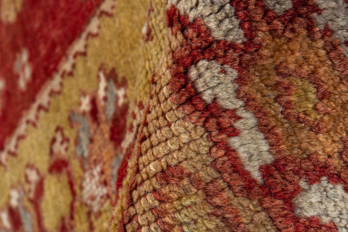 Oushak is a town in West Central Anatolia. Since the fifteenth century, it is the most famous and important rug producing center of Turkey. Particularly well known are the rugs known by their pattern such as “Large Medallion Oushak, “Star Oushak” “and Small medallion Oushak”. They frequently appeared in sixteenth and seventeenth-century Old Master European paintings. There is a group of paintings depicting King Henry VIII of England and family members standing on several different well-known types. From the late eighteenth and through the twentieth century, it became an important center for producing carpets for export to the West. The rugs from the late nineteenth and early twentieth century are highly favored for their decorative appeal with their soft palette, excellent color combinations, and informal drawing. Oushak weaves were also produced in the surrounding villages on simple looms where the weavers had the freedom to create their own designs.