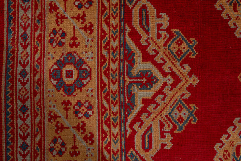 Oushak is a town in West Central Anatolia. Since the fifteenth century, it is the most famous and important rug producing center of Turkey. Particularly well known are the rugs known by their pattern such as “Large Medallion Oushak, “Star Oushak” “and Small medallion Oushak”. They frequently appeared in sixteenth and seventeenth-century Old Master European paintings. There is a group of paintings depicting King Henry VIII of England and family members standing on several different well-known types. From the late eighteenth and through the twentieth century, it became an important center for producing carpets for export to the West. The rugs from the late nineteenth and early twentieth century are highly favored for their decorative appeal with their soft palette, excellent color combinations, and informal drawing. Oushak weaves were also produced in the surrounding villages on simple looms where the weavers had the freedom to create their own designs.
