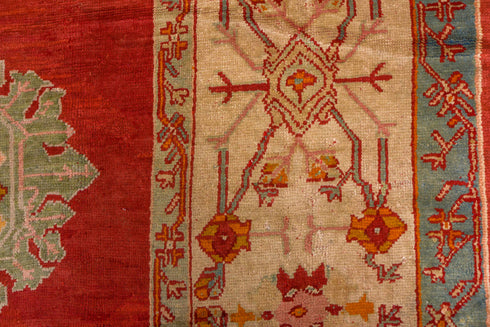 Oushak is a town in West Central Anatolia. Since the fifteenth century, it is the most famous and important rug producing center of Turkey. Particularly well known are the rugs known by their pattern such as “Large Medallion Oushak, “Star Oushak” “and Small medallion Oushak”. They frequently appeared in sixteenth and seventeenth-century Old Master European paintings. There is a group of paintings depicting King Henry VIII of England and family members standing on several different well-known types. From the late eighteenth and through the twentieth century, it became an important center for producing carpets for export to the West. The rugs from the late nineteenth and early twentieth century are highly favored for their decorative appeal with their soft palette, excellent color combinations, and informal drawing. Oushak weaves were also produced in the surrounding villages on simple looms where the weavers had the freedom to create their own designs.