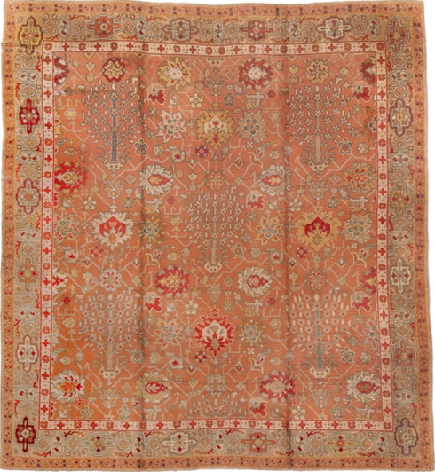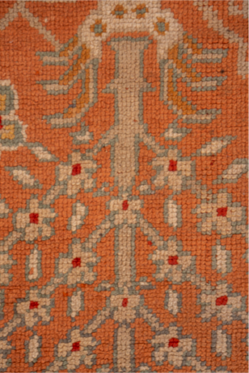Oushak is a town in West Central Anatolia. Since the fifteenth century, it is the most famous and important rug producing center of Turkey. Particularly well known are the rugs known by their pattern such as “Large Medallion Oushak, “Star Oushak” “and Small medallion Oushak”. They frequently appeared in sixteenth and seventeenth-century Old Master European paintings. There is a group of paintings depicting King Henry VIII of England and family members standing on several different well-known types. From the late eighteenth and through the twentieth century, it became an important center for producing carpets for export to the West. The rugs from the late nineteenth and early twentieth century are highly favored for their decorative appeal with their soft palette, excellent color combinations, and informal drawing. Oushak weaves were also produced in the surrounding villages on simple looms where the weavers had the freedom to create their own designs.