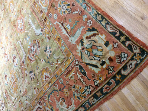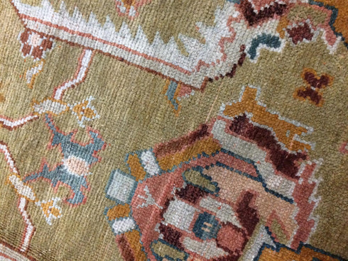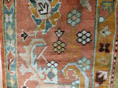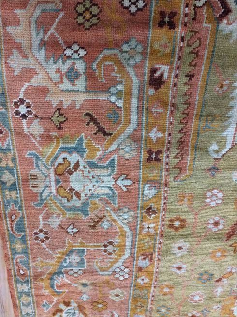 Oushak is a town in West Central Anatolia. Since the fifteenth century, it is the most famous and important rug producing center of Turkey. Particularly well known are the rugs known by their pattern such as “Large Medallion Oushak, “Star Oushak” “and Small medallion Oushak”. They frequently appeared in sixteenth and seventeenth-century Old Master European paintings. There is a group of paintings depicting King Henry VIII of England and family members standing on several different well-known types. From the late eighteenth and through the twentieth century, it became an important center for producing carpets for export to the West. The rugs from the late nineteenth and early twentieth century are highly favored for their decorative appeal with their soft palette, excellent color combinations, and informal drawing. Oushak weaves were also produced in the surrounding villages on simple looms where the weavers had the freedom to create their own designs.