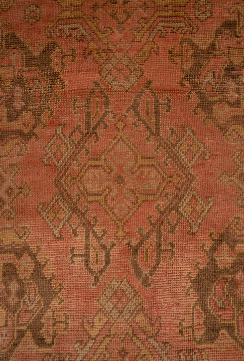 Oushak is a town in West Central Anatolia. Since the fifteenth century, it is the most famous and important rug producing center of Turkey. Particularly well known are the rugs known by their pattern such as “Large Medallion Oushak, “Star Oushak” “and Small medallion Oushak”. They frequently appeared in sixteenth and seventeenth-century Old Master European paintings. There is a group of paintings depicting King Henry VIII of England and family members standing on several different well-known types. From the late eighteenth and through the twentieth century, it became an important center for producing carpets for export to the West. The rugs from the late nineteenth and early twentieth century are highly favored for their decorative appeal with their soft palette, excellent color combinations, and informal drawing. Oushak weaves were also produced in the surrounding villages on simple looms where the weavers had the freedom to create their own designs.