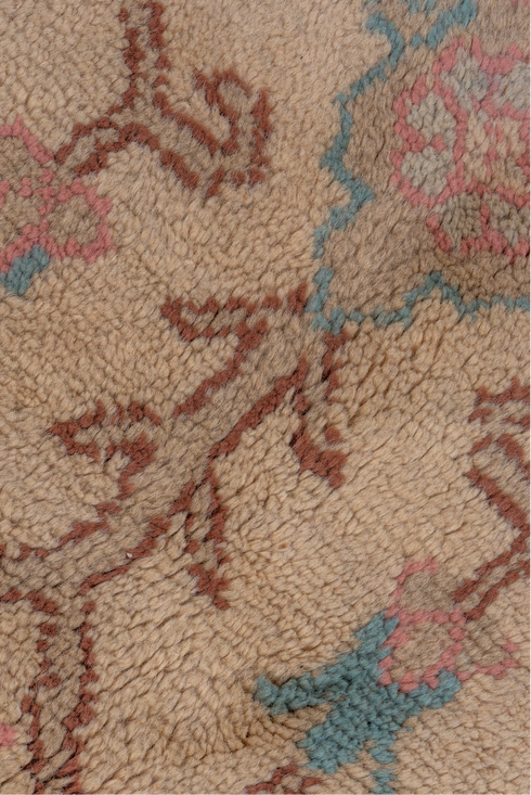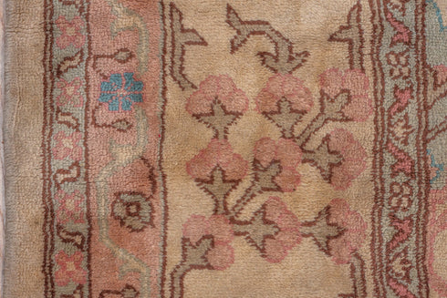 Oushak is a town in West Central Anatolia. Since the fifteenth century, it is the most famous and important rug producing center of Turkey. Particularly well known are the rugs known by their pattern such as “Large Medallion Oushak, “Star Oushak” “and Small medallion Oushak”. They frequently appeared in sixteenth and seventeenth-century Old Master European paintings. There is a group of paintings depicting King Henry VIII of England and family members standing on several different well-known types. From the late eighteenth and through the twentieth century, it became an important center for producing carpets for export to the West. The rugs from the late nineteenth and early twentieth century are highly favored for their decorative appeal with their soft palette, excellent color combinations, and informal drawing. Oushak weaves were also produced in the surrounding villages on simple looms where the weavers had the freedom to create their own designs.