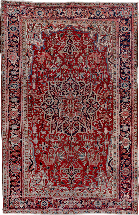Located in north west Iran, Heriz is one of the most well known rug weaving centers. They are woven with geometric designs on a cotton foundation using the symmetrical (Turkish / Ghiordes) knot. They usually come with a large central squarish medallion with pendants either ends.