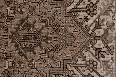 Located in north west Iran, Heriz is one of the most well known rug weaving centers. They are woven with geometric designs on a cotton foundation using the symmetrical (Turkish / Ghiordes) knot. They usually come with a large central squarish medallion with pendants either ends.