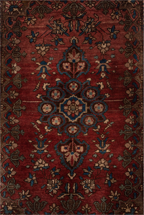 Sarouk is a village in western Iran north of Arak, famed for its 1920’s-1930’s floral rugs. They have both medallions and all over designs and are woven with asymmetric knotting on a cotton foundation. They often have a rich burgundy color as well as rose and rust grounds.