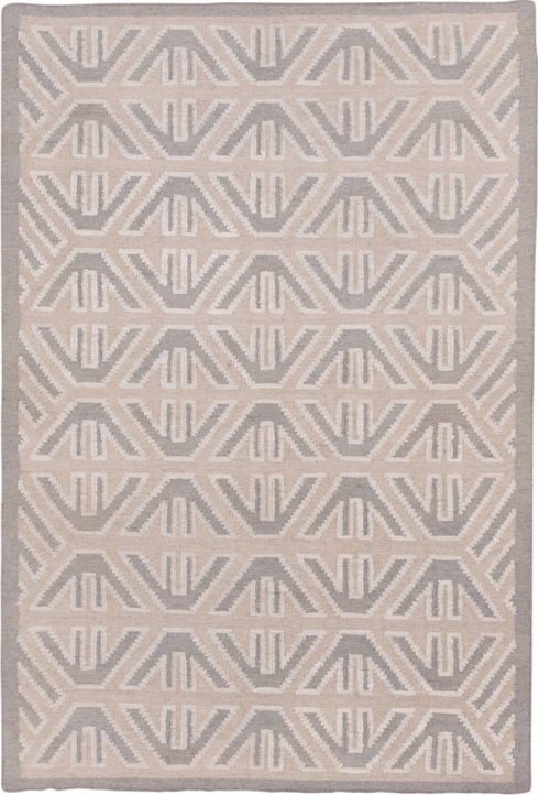A Kilim is a flat woven rug where the weft strands are used to create the design. They nearly always have bold geometric patterns due to the technical difficulties in weaving curved lines.
