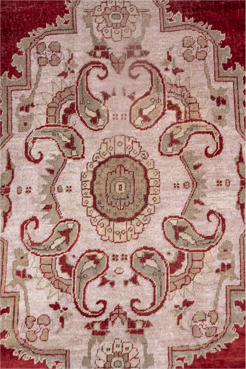 Oushak is a town in West Central Anatolia. Since the fifteenth century, it is the most famous and important rug producing center of Turkey. Particularly well known are the rugs known by their pattern such as “Large Medallion Oushak, “Star Oushak” “and Small medallion Oushak”. They frequently appeared in sixteenth and seventeenth-century Old Master European paintings. There is a group of paintings depicting King Henry VIII of England and family members standing on several different well-known types. From the late eighteenth and through the twentieth century, it became an important center for producing carpets for export to the West. The rugs from the late nineteenth and early twentieth century are highly favored for their decorative appeal with their soft palette, excellent color combinations, and informal drawing. Oushak weaves were also produced in the surrounding villages on simple looms where the weavers had the freedom to create their own designs.