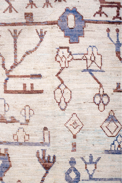Tulu rugs are woven in the Konya area of Turkey. They were originally made as bedding rugs. The Term “Tulu” means “long haired”. They have a long lustrous pile with a course weave and bold archaic designs which make them ideal for contemporary décor.