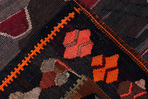 A Kilim is a flat woven rug where the weft strands are used to create the design. They nearly always have bold geometric patterns due to the technical difficulties in weaving curved lines.