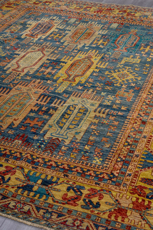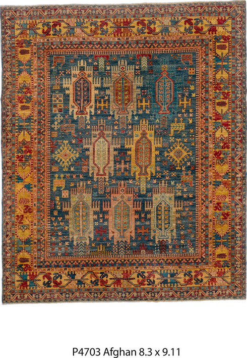 Although Afghanistan shares its western border with Iran, its rugs share no similarities. It is intersected by Baluch, Uzbec and Turkmen weavers and so have a Central Asian influence. The weavers are tribal and nomadic and often use the “Gul” or elephants foot design. They come in deep madders and rusts with black outlining. They sometimes use greens, yellows and blue in the accent colors.