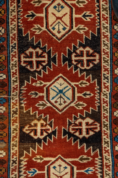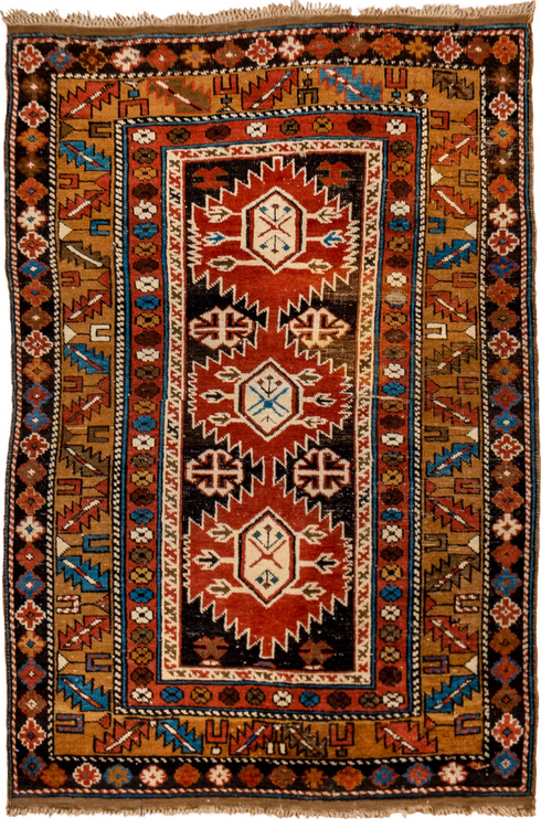 Shirvan is a central eastern Caucasian region producing fine rugs. They are usually small in size and use geometric patterns with stylized animal motifs. Designs may have prayer, medallion and all over formats.
